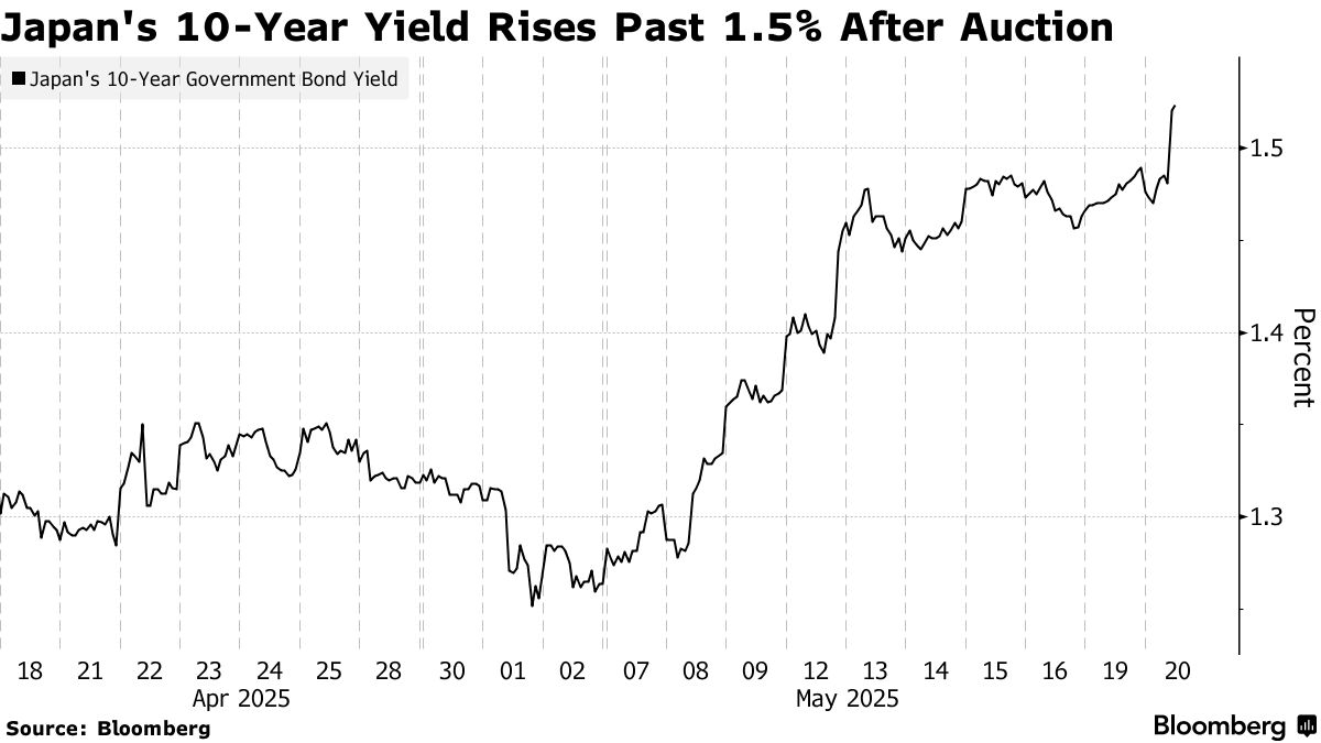 此次拍卖还正值市场波动加剧之际,部分原因是美国总统特朗普的政策举措所致。交易员也在关注穆迪上周下调美国评级是否会影响日本的财政政策辩论。石破茂在日本议会中表示,他不同意用日本国债为减税措施提供资金的观点,并对在国家借贷成本上升之际追加财政支出持谨慎态度。石破茂表示:“政府无权对利率发表评论,但现实是我们正面对一个利率上行的世界。”“我国的财政状况无疑极其糟糕,甚至比希腊还差。”